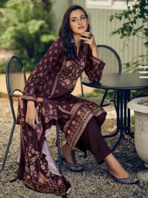 PASHMINA TWILL PRINT WITH EMBROIDERY UNSTITCHED SUIT