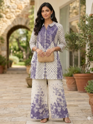 TOP : DIGITAL PRINTED MASLIN CO-ORD SET (LENGH 28 INCHES)