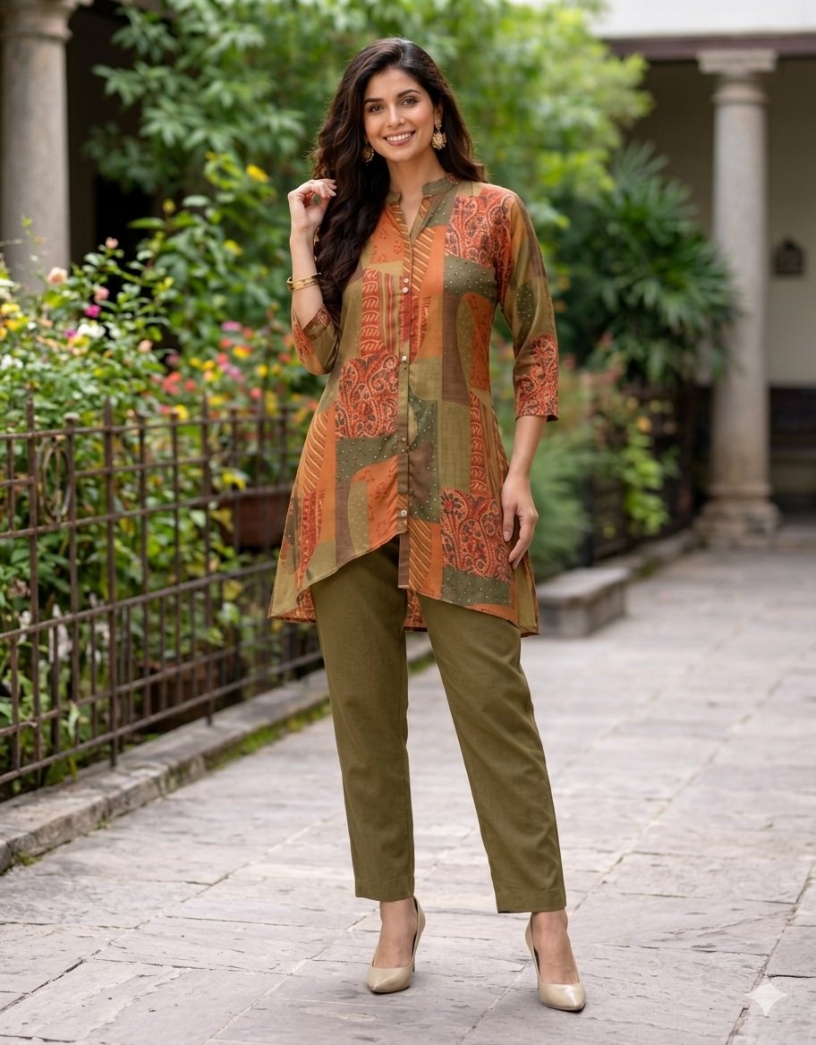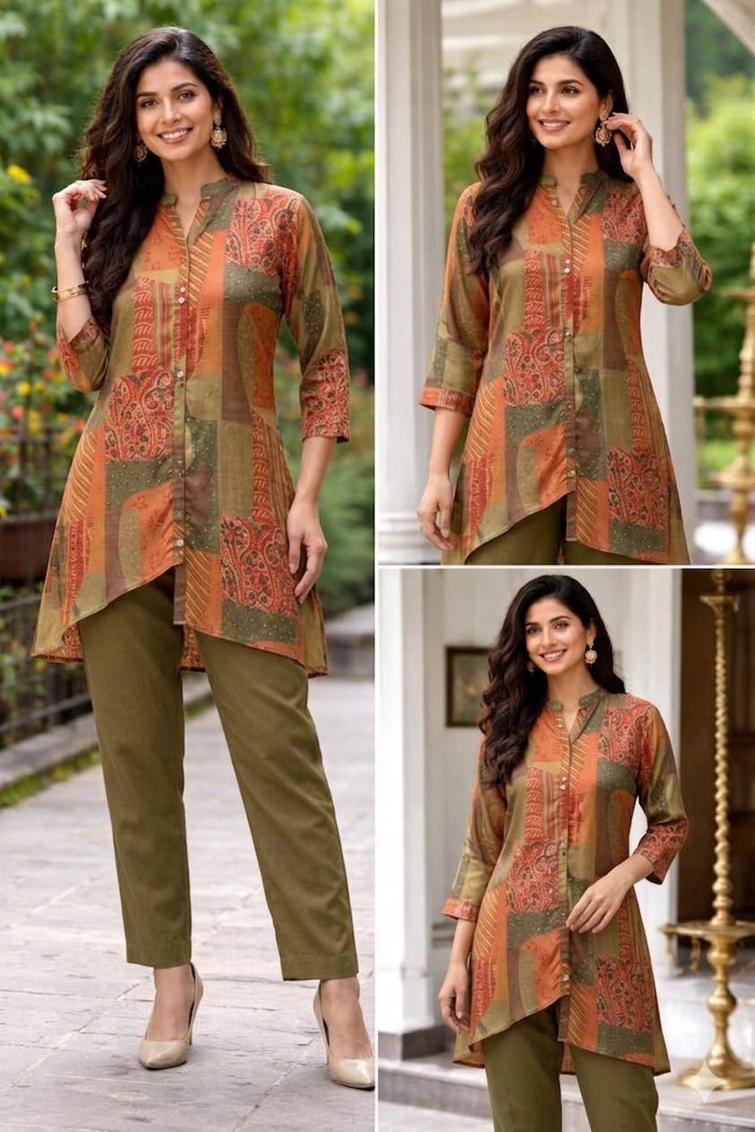 TOP : DIGITAL PRINTED MASLIN CO-ORD SET (LENGH 27 INCHES)