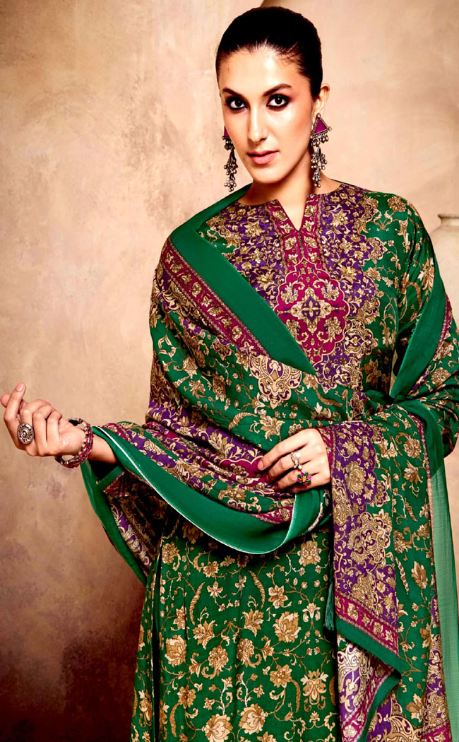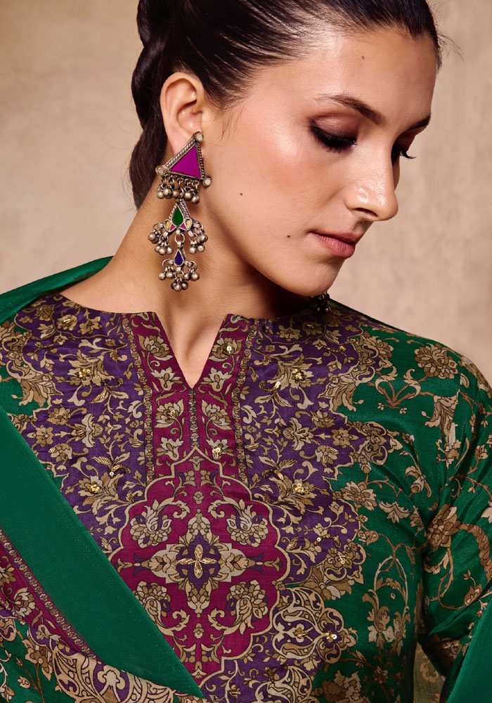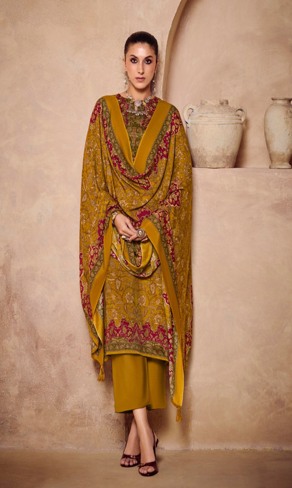 DIGITAL PRINTED MUSLIN SILK UNSTITCHED HEAVY SUIT WITH KHATLI WORK