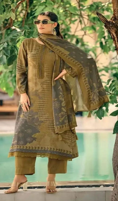 DIGITAL PRINTED UNSTITCHED PASHMINA SUIT WITH LACE WORK