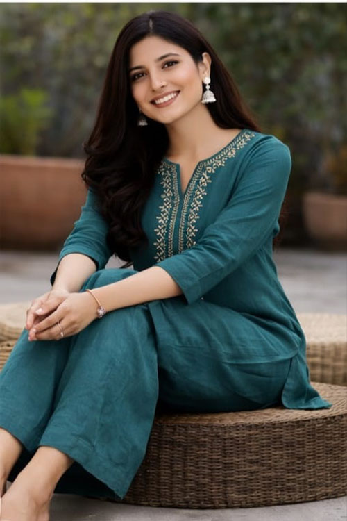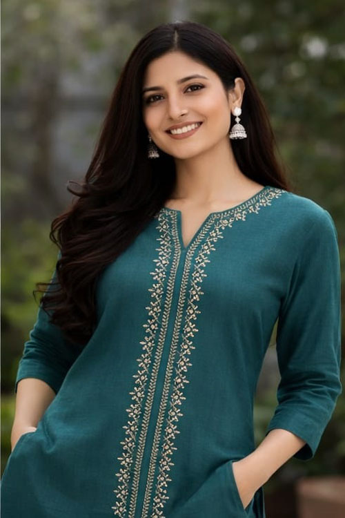 TOP :KHADI COTTON CO-ORD WITH HANDWORK (LENGTH 31 INCHES)