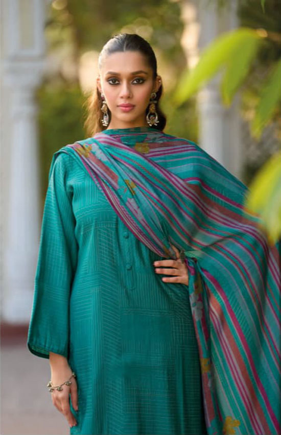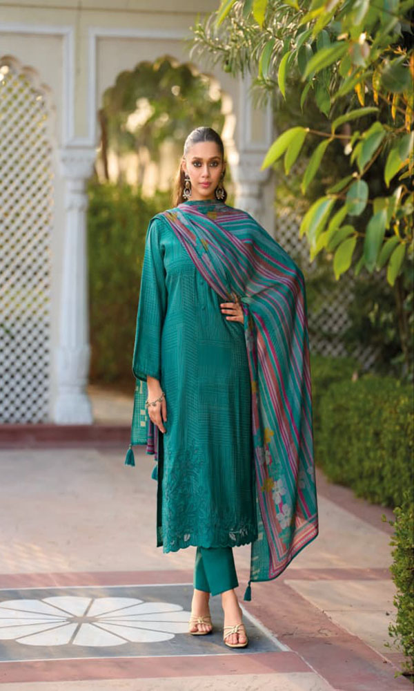 UNSTITCHED COTTON SILK DIGITAL FOIL PRINT SUIT WITH FANCY LASER CUT EMBROIDERY WORK